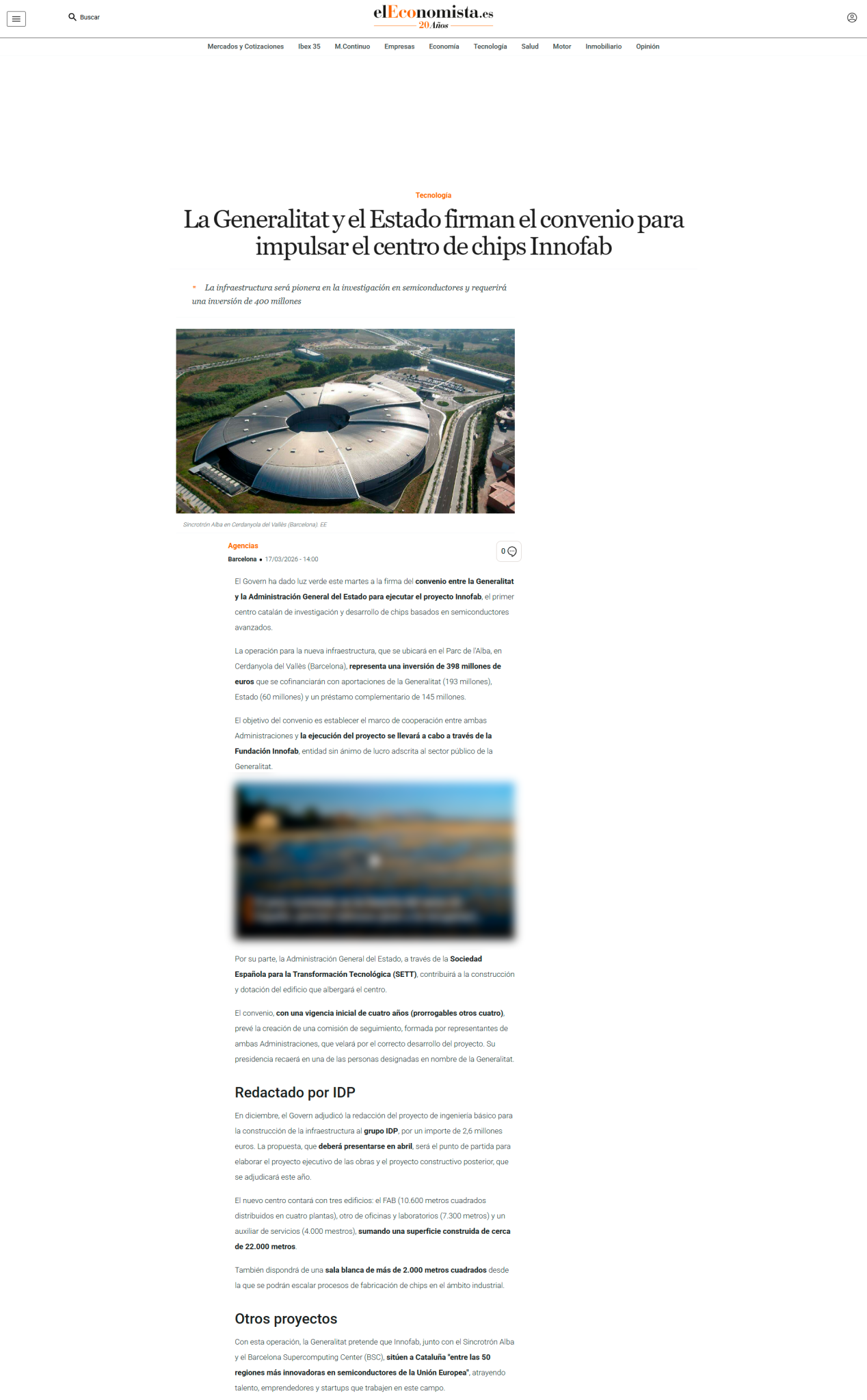 The Catalan Government and the Spanish Government have signed an agreement to support the Innofab chip centre
