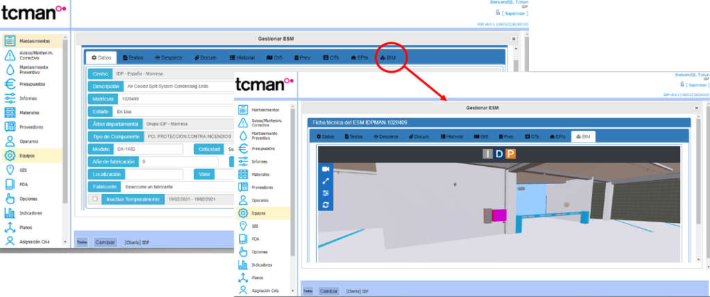Hemos establecido una colaboración en la que se han integrado dos herramientas líderes en el mercado: GIM, que es el prestigioso y extendido GMAO de TCMAN, y el DTWIN, que se trata de nuestra innovadora plataforma de Gemelos Digitales BIM.